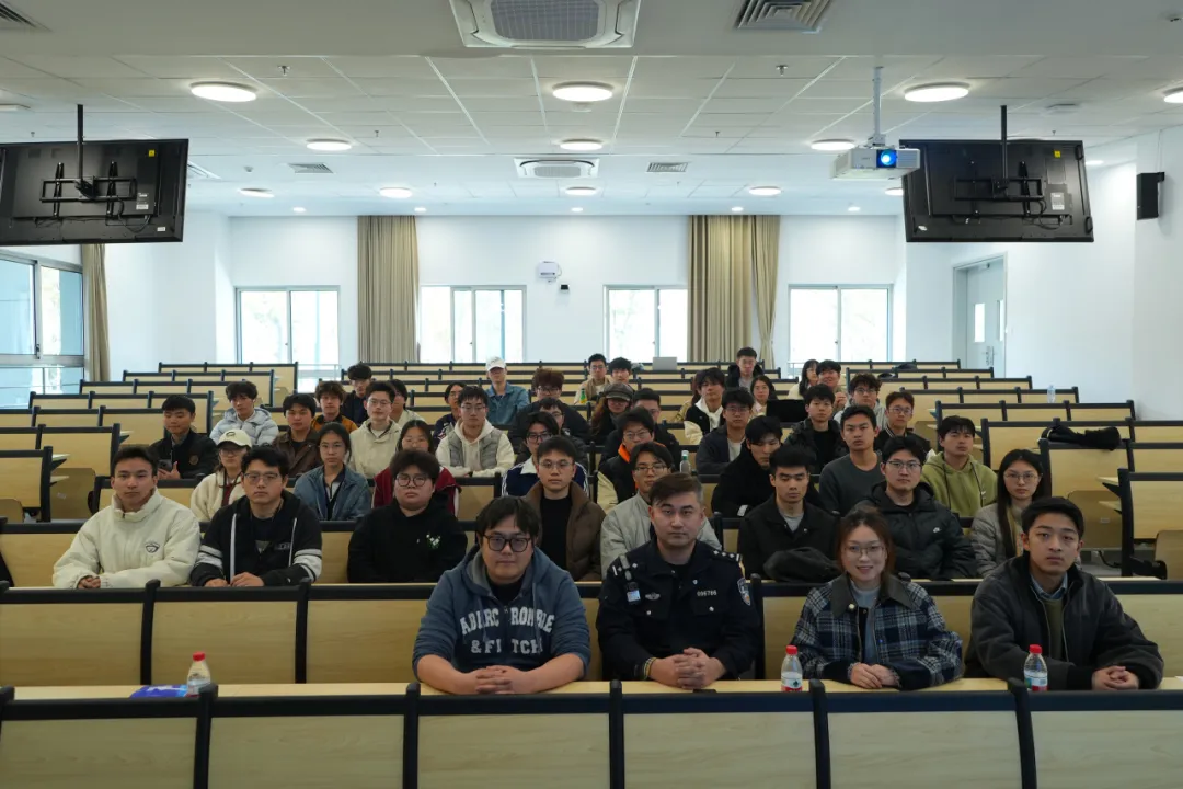 活动中,各位警官结合多起真实案例,系统梳理了刷单类、投资类、网购类、交友类、熟人诈骗等常见电信网络诈骗类型,深入解析诈骗手段的隐蔽性与迷惑性,引导同学们牢记“凡是转账都是诈骗”,切实提升风险辨别能力。保卫处老师围绕校园安全重点,详细讲解了宿舍用电安全、实验室操作规范、电动自行车充电管理等内容,剖析校园火灾常见诱因与防范要点,明确校园内除科研必要外严禁飞无人机的要求,还结合法律法规与校纪校规,警示同学们远离违法违规行为。