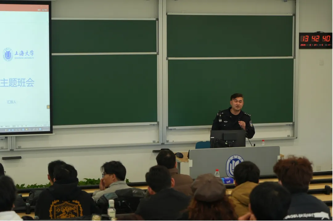 为构建常态化安全教育体系,持续推进校园安全宣传教育,上海大学力学与工程科学学院于三月下旬在宝山校区、嘉定校区及延长校区,分别开展2026年春季学期安全主题教育系列讲座,通过警校联合的形式,为同学们筑牢校园安全防线。本次系列活动分批次开展,特邀上海市公安局嘉定分局反诈专班陆航警官、上海市公安局文化保卫分局沪东高校派出所马思瀛警官、保卫处嘉定校区安全主管龚振海老师、保卫处延长校区安全主管张现国老师、保卫处陈骏老师,为同学们带来案例翔实、警示性强的安全主题宣讲,辅导员老师及各年级研究生共同参与。