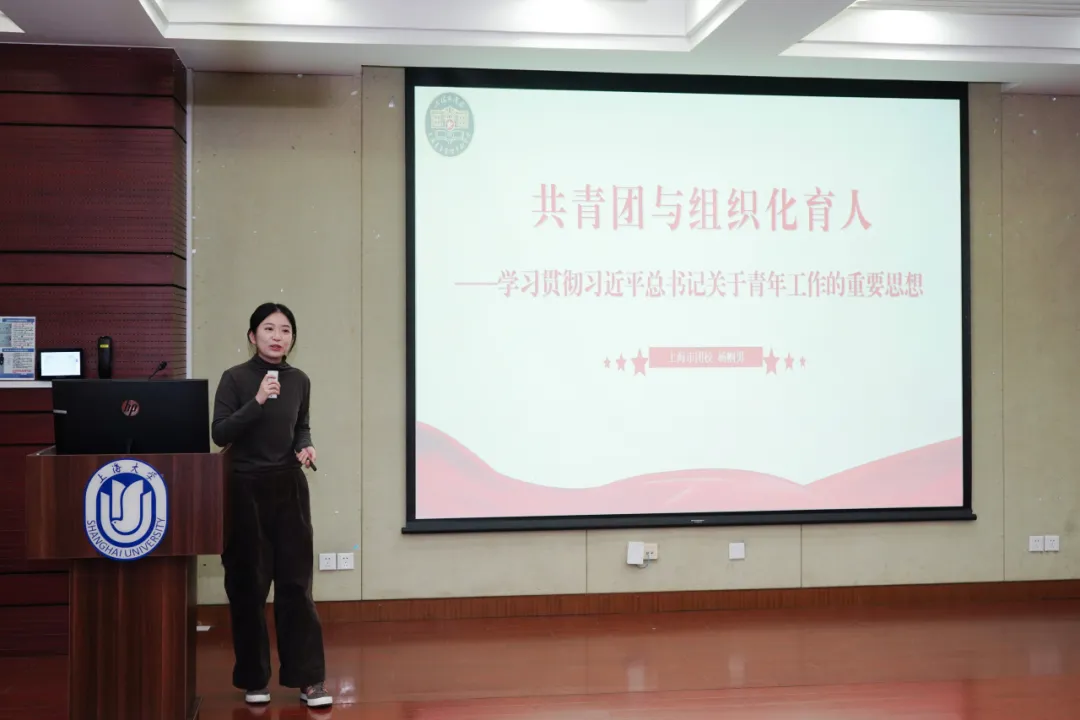 上海市团校青年教师杨帼男老师以“共青团与组织化育人——学习贯彻习近平总书记关于青年工作的重要思想”为题,系统阐述了共青团在新时代组织化育人过程中的职责使命与实践路径。她结合《论党的青年工作》等重要文献,重点强调了组织化育人是共青团落实“为党育人”根本任务的关键机制。同时,通过基层团组织建设实践与青年典型成长案例,生动诠释了如何依托组织化载体,将广大青年紧密团结在党的周围。