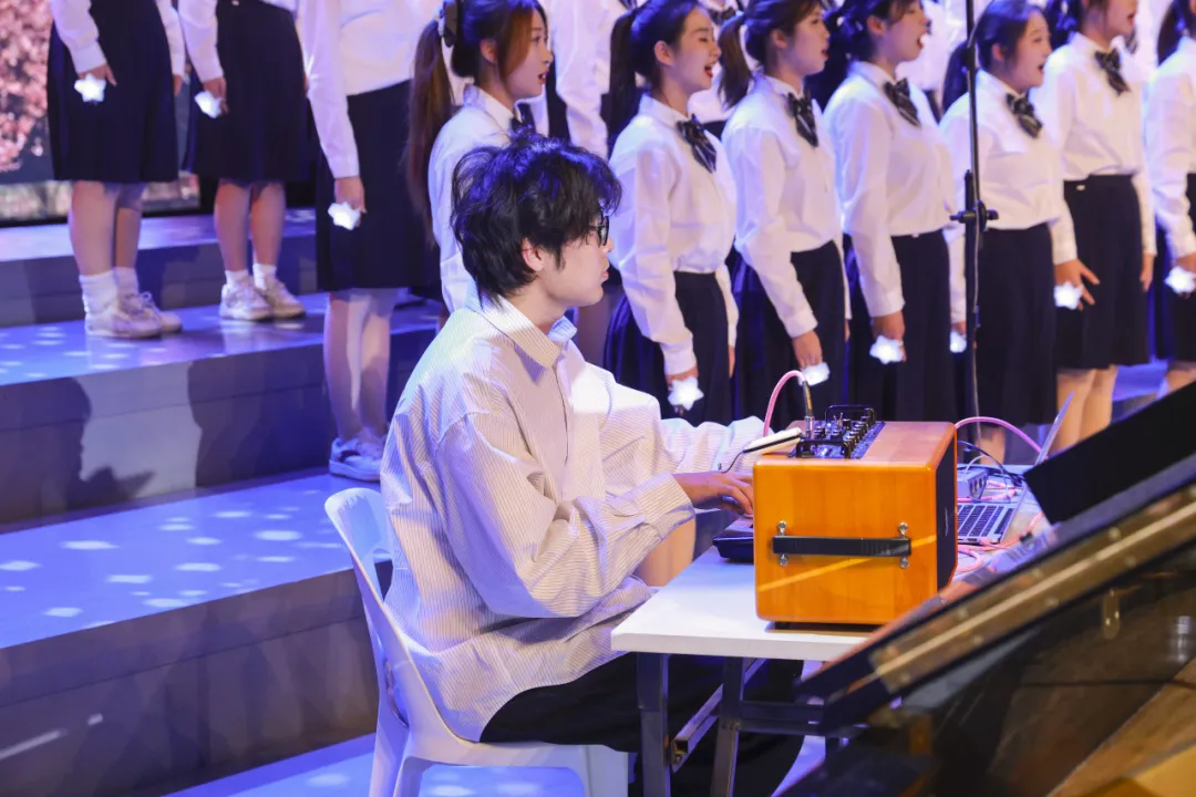 比赛当日,同学们提前到场投入彩排,从站位调整到舞台表现,从伴奏配合到情绪酝酿,每一个环节都精心优化,只为在正式演出时唱出力工青年朝气蓬勃的青春之声。